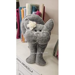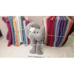 il pan feltro per realizzare gatto e fiore , una matassina di filo, e gli occhi di perline