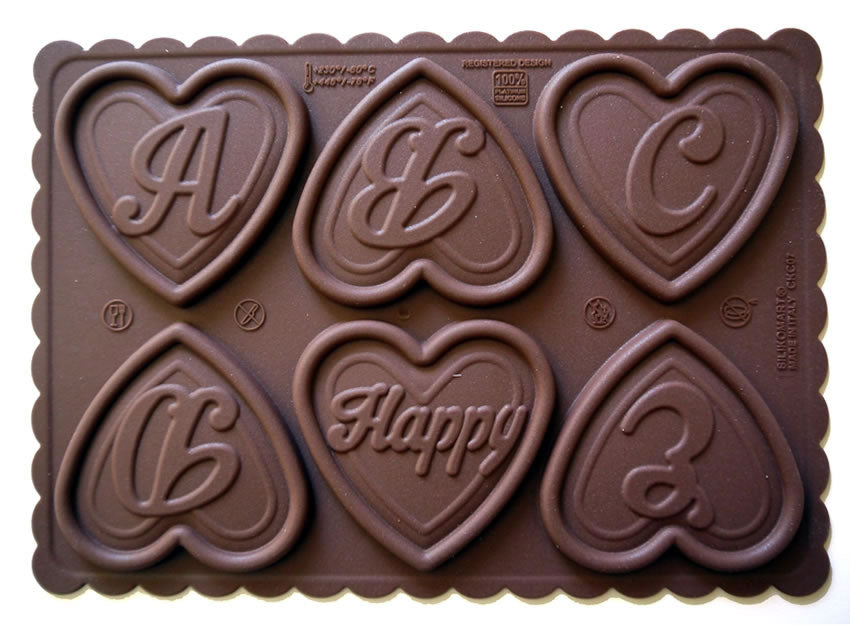 Stampo in silicone antiaderente per realizzare bellissimi e dolcissimi oggetti a forma di cuore con l'iniziale del tuo nome (A, B, C, D, E, "Happy")