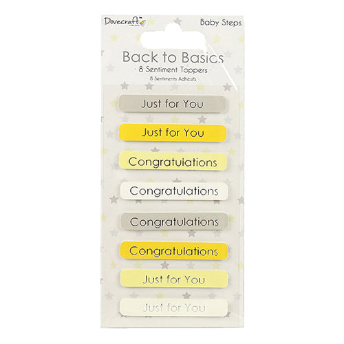 Confezione di 8 adesivi con scritte, in diversi colori, da utilizzare per attività di scrapbooking.