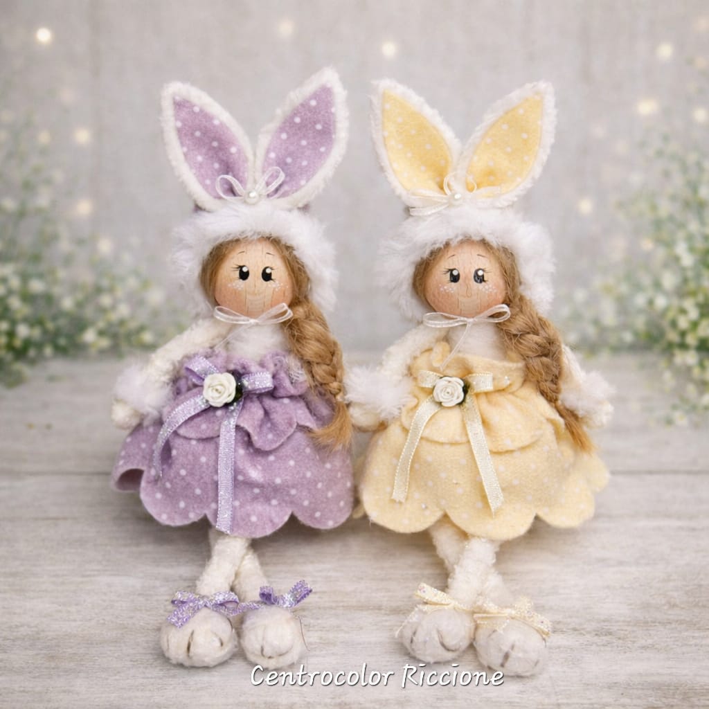 il kit comprende tutto il necessario per realizzare due bamboline nel colore lilla e gialla