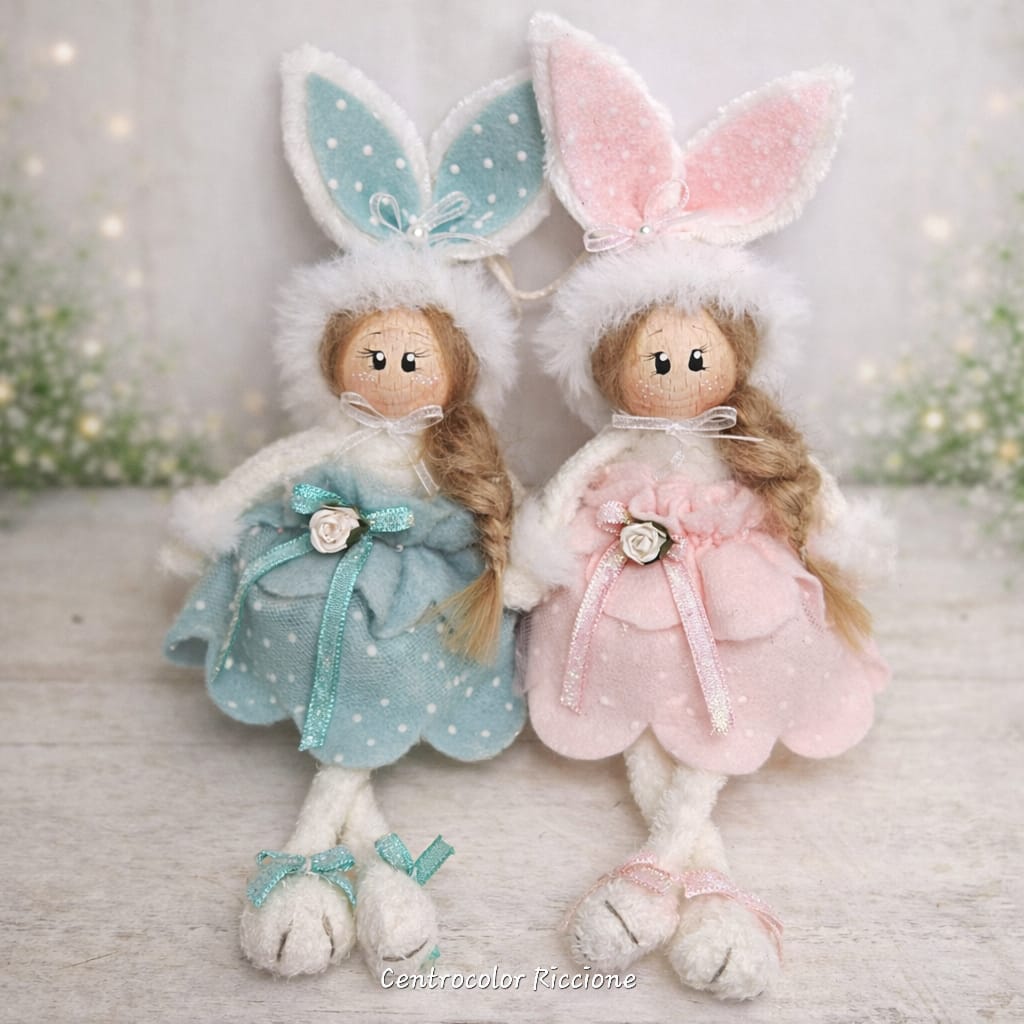 il kit comprende tutto il necessario per realizzare due bamboline nel colore tiffany e rosa