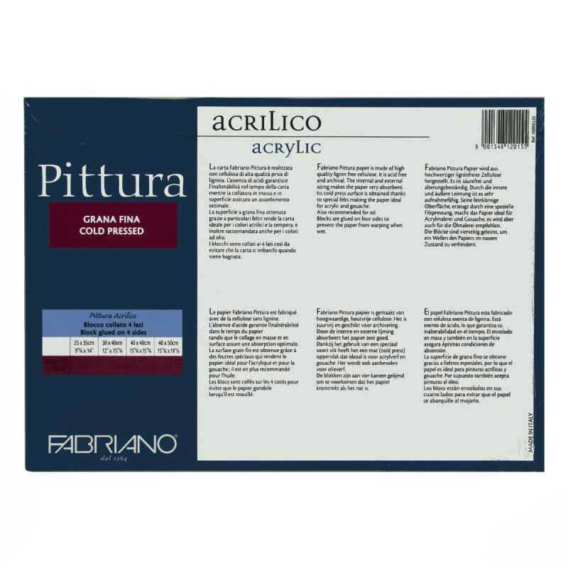 Blocco per Pittura Acrilica Fabriano, grana fine da 400gr di pura cellulosa.