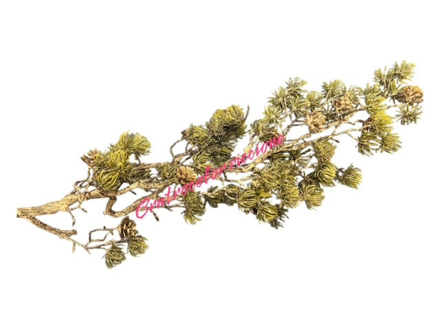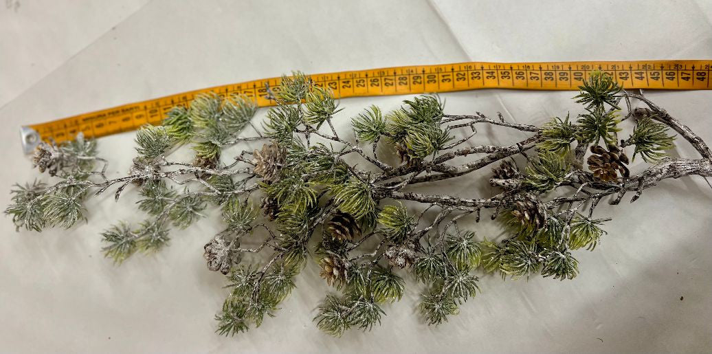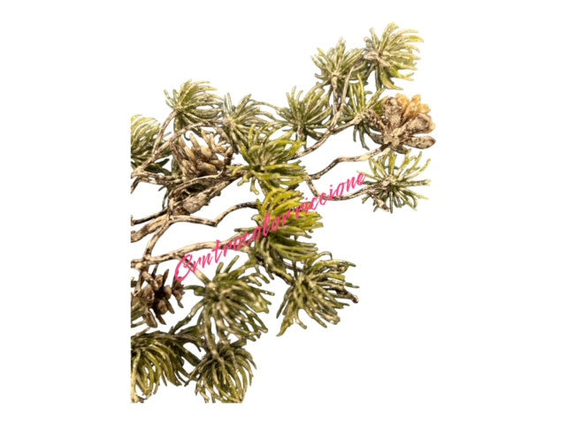 Ramo verde molto folto con abete e pigne leggermente sbiancate e brillantate, da utilizzarsi intero o taglaito per la decorazione dei vostri gnomi in particolare il cappello del nostro famoso gnomo Tobia