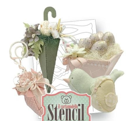 Cartamodello Stencil Creattiva Uccellini e Ombrello CRSTE-037