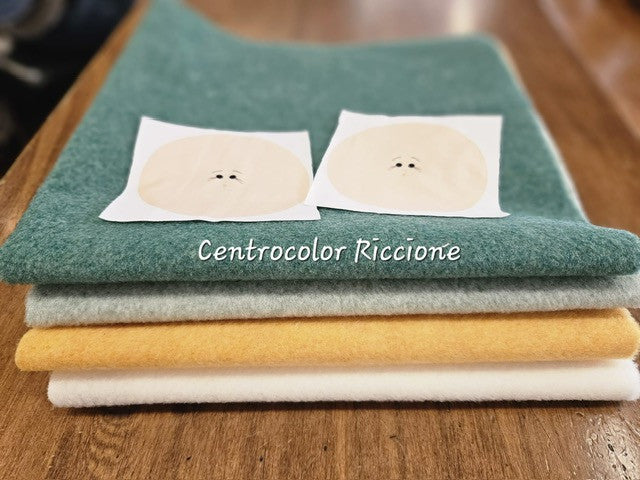 il kit comprende 4 fogli di panfeltro con tonalita ( vedi foto) e due visi gia stampati in licra.