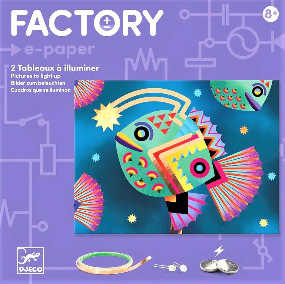 Piccoli elettricisti crescono! Illumina le tue creazioni inserendo dei conduttori adesivi sulla base illustrata, tracciare il circuito elettrico e inserendo i led!