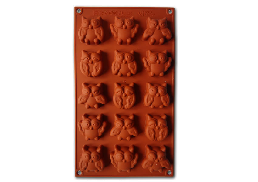 Stampo in silicone monoporzione e antiaderente per creare 15 simpaticissimi e teneri gufi.