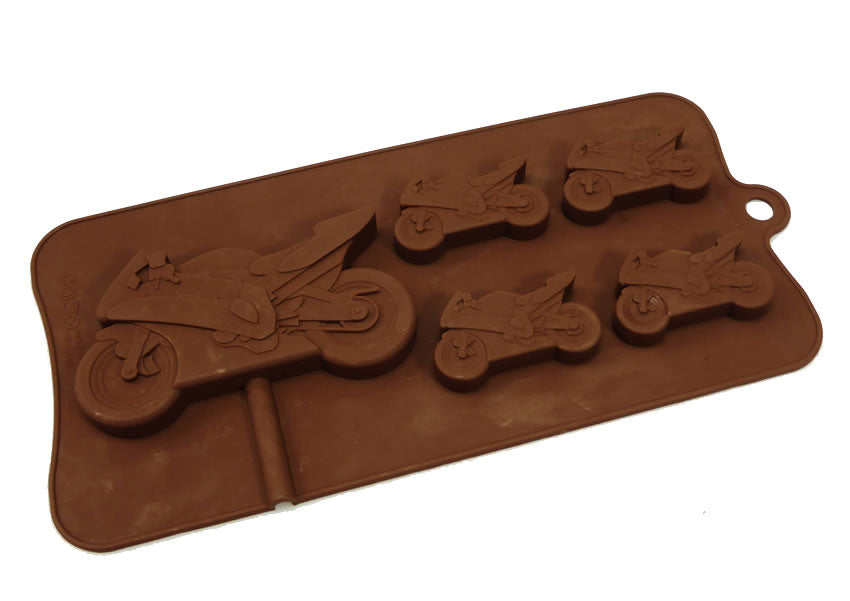 Stampo in silicone antiaderente per realizzare bellissimi e simpaticissimi oggetti a forma di motocicletta.