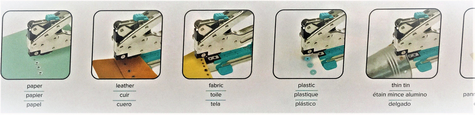Crop-A-Dile - We R Memory Keepers è una pinza utilizzata per la foratura e l'applicazione di occhielli o altri tipi di abbellimenti su carta, cartoncino, pelle, plastica, legno e tanto altro. Grazie al distanziatore potrai scegliere diverse misure e forare alla stessa lunghezza dal bordo.