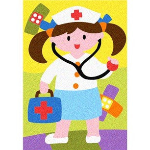 5 fogli adesivi (15x20 cm) con differenti soggetti ispirati dal mondo del lavoro e alle professioni (l'infermiera, la ballerina, la contadina, la pasticcera, la pittrice). E' compreso un supporto illustrativo per facilitarne l'utilizzo.