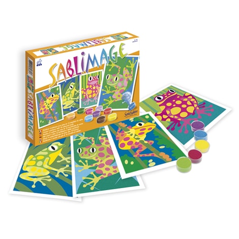 Sablimage: La magia dell'arte con la sabbia! Ideale per i bambini per sviluppare la creatività e l'abilità manuale senza sporcarsi. Basta rimuovere le superfici pre-tagliate con base adesiva e cospargere i diversi colori in sabbia. Il kit contiene: • dai 15 ai 18 vasetti di sabbia • 4 immagini prestampate • 1 foglio d'istruzioni