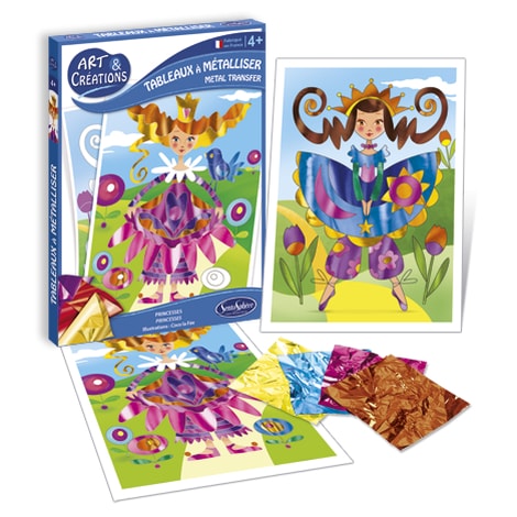 Tableaux à Métalliser: Hobby creativo per stimolare la creatività e l'abilità manuale. Speciale e magica tecnica per dare vita al tuo disegno, trasferendo i pigmenti metallici sul foglio con parti del disegno già pre-tagliate e pre-incollate; togliendo il foglio metallico sull'adesivo, aderirà magicamente. Ideale per i bambini!