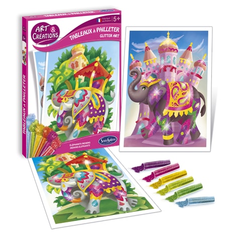 ll kit contiene: • 6 tubetti di paillettes • 2 illustrazioni pre-tagliate e autoadesive • 1 coltello in plastica per rimuovere lo strato protettivo • 1 set di istruzioni.