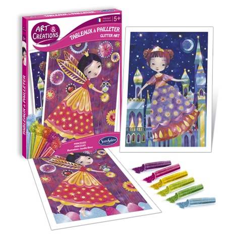 Tableaux à Pailleter: Hobby creativo per stimolare la creatività e l'abilità manuale. Ideale per i bambini! Speciale tecnica per dare luce e vita al tuo disegno. Basta rimuovere le superfici pre-tagliate con base adesiva e cospargere le pailettes in dotazione in diverse colorazioni. Magia! Le pailettes rimarranno magicamente sul tuo disegno!