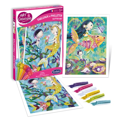 Tableaux à Pailleter: Hobby creativo per stimolare la creatività e l'abilità manuale. Ideale per i bambini! Speciale tecnica per dare luce e vita al tuo disegno. Basta rimuovere le superfici pre-tagliate con base adesiva e cospargere le pailettes in dotazione in diverse colorazioni. Magia! Le pailettes rimarranno magicamente sul tuo disegno!