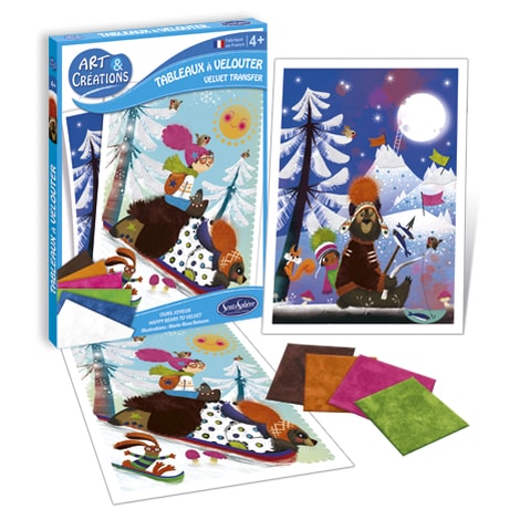Tableaux à Velouter: Hobby creativo per stimolare la creatività e l'abilità manuale. Speciale e magica tecnica per dare vita al tuo disegno, trasferendo la consistenza del velluto sul foglio con parti del disegno già pre-tagliate e pre-incollate: dopo aver appoggiato il foglio di velluto sull'adesivo, si crea la magia! La parte vellutata rimarrà solo nella parte da colorare!