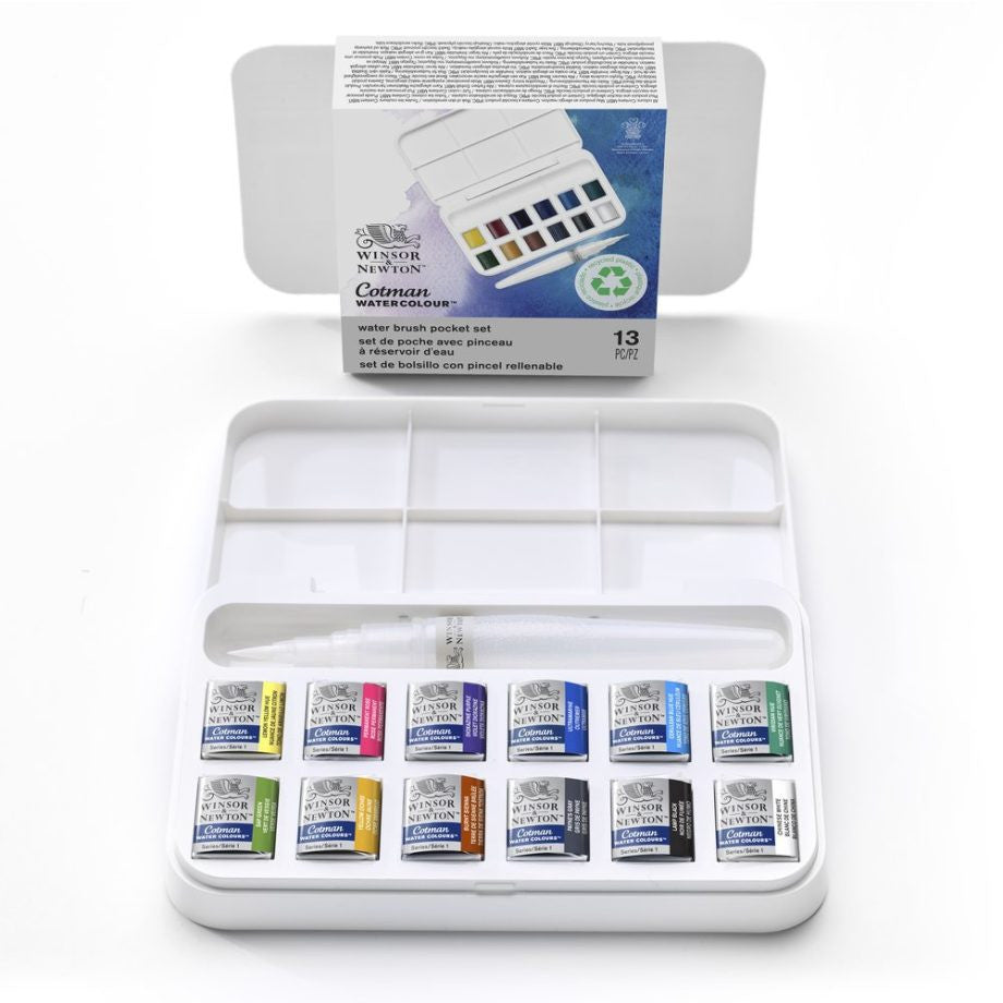 Winsor & Newton Cotman Set Brush Pen 12 x 1/2 Godet + Pennello Serbatoio